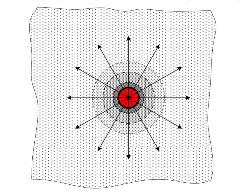Схема модели распространения тепла от точечного источника в двумерном материале